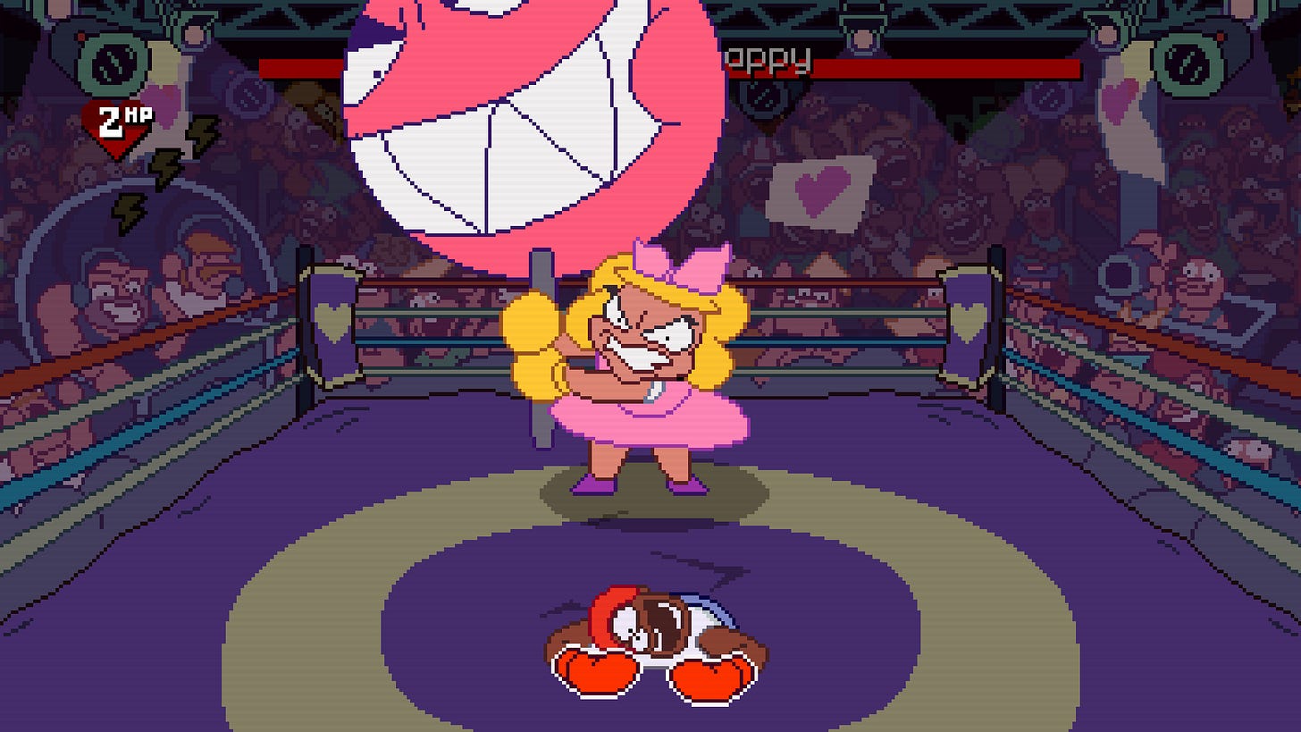 As indebted to Looney Tunes cartoons as it is to the Punch-Out series, every boxer has fluid and hilarious animation to best telegraph their attacks. Before you attempt each fight for the first time, there’s a tongue-in-cheek cutscene of them getting ready for the match. From the aforementioned kids in a trenchcoat to a fighter who bulks up his water weight by drinking a swimming pool, the seven fighters in the demo give a good idea of the creative humour we can expect of the 15+ foes in the full game. It also promises a story mode, challenging rematches and upgradeable abilities to make your fighter your own.